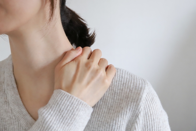 肩甲骨を意識的に動かすだけでも、肩まわりの血流改善と筋肉の緊張緩和に効果があります。デスクワークの合間に、肩甲骨を背中の中央に引き寄せるように胸を張る動作や、両肩をゆっくり大きく回す動作を取り入れてみてください。1回数分でも、続けることで変化を感じていただけるはずです。