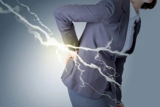 腰まわりの筋肉を包む「筋膜」に炎症や癒着が生じることで、動いたときや体をひねったときに鋭い痛みが走ります。デスクワークや長時間の立ち仕事など、同じ姿勢を続ける生活習慣が大きな要因となっていることが多いです。慢性化するとジワジワとしたズキズキ感が続くようになることも。