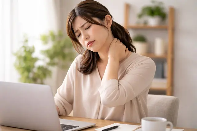 「様子を見ていれば治るかな」と思っているうちに、首まわりの筋肉が硬直したまま固まっていってしまうことがあります。体はかばいながら動こうとするため、首を守ろうとして肩や背中に余計な緊張がたまり、気づけば肩こりや頭痛、背中の張りまでセットで出てきてしまうのです。